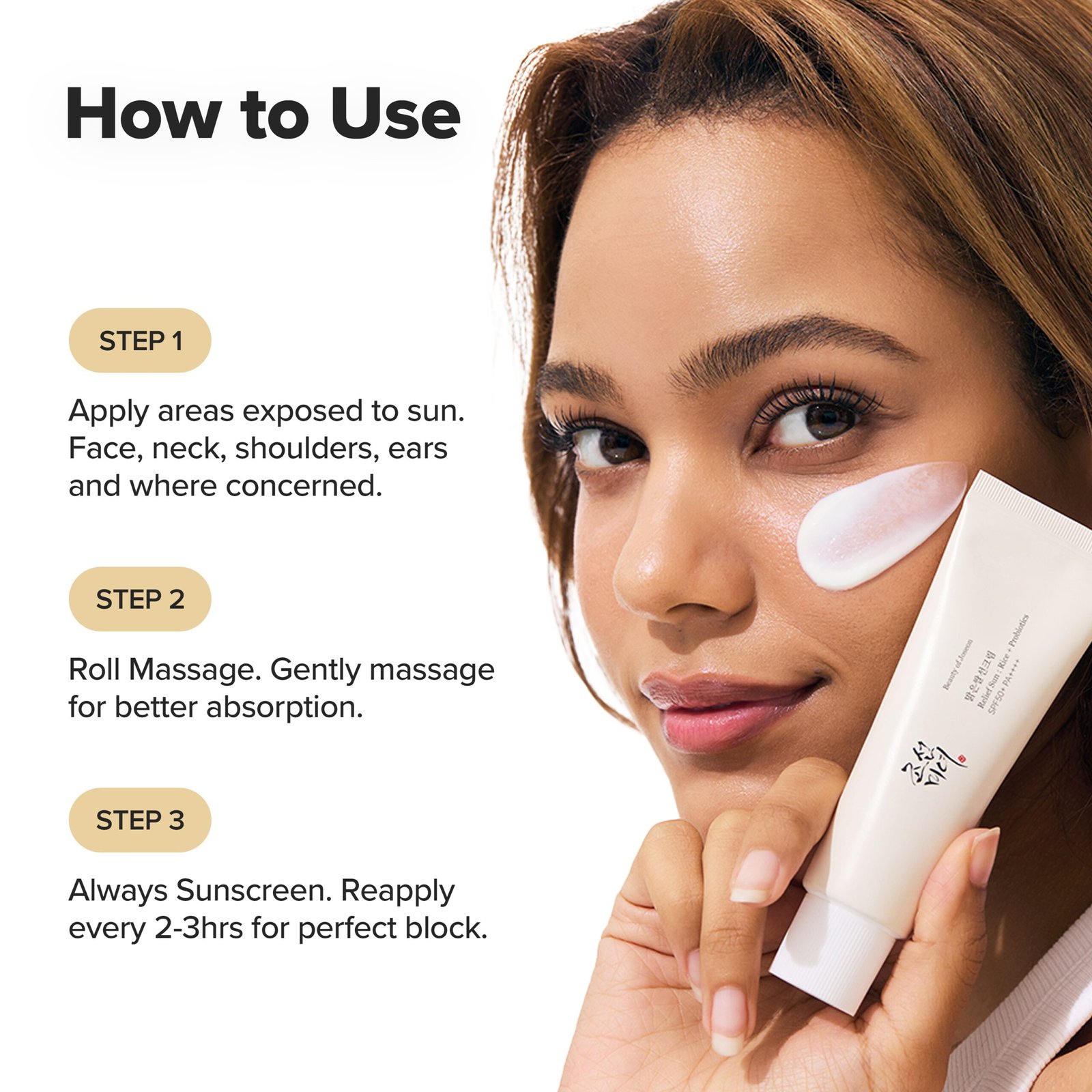 Apply Beauty Of Joseon Sunscreen as the last step of your skincare routine.