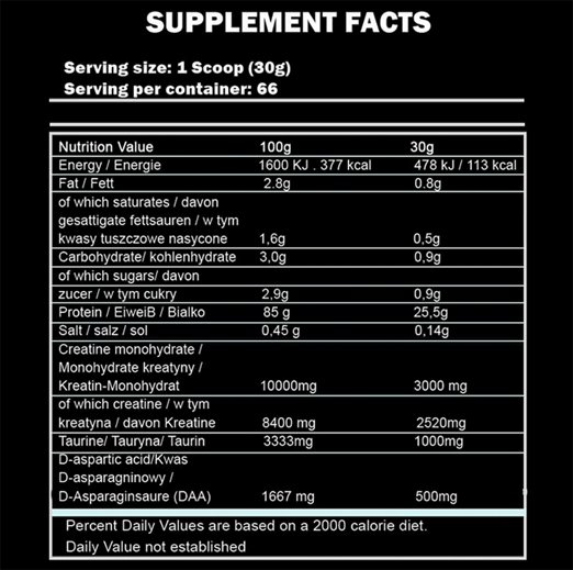 Enhanced with creatine monohydrate, taurine, and D-aspartic acid, this formula supports strength, endurance, and overall training performance. Developed with the experience and expertise of legendary bodybuilder Kevin Levrone, it is designed for athletes who demand purity, quality, and results.